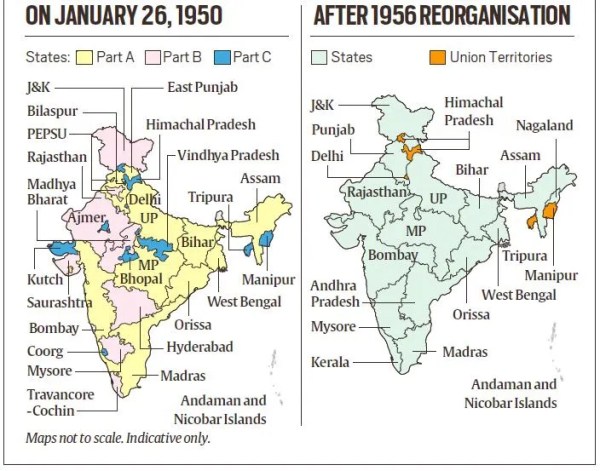 — Justice Ali submitted a 267-page report on September 30, 1955. Based on the SRC’s recommendations, the political map of India was redrawn to comprise 14 states and six Union Territories (UTs).